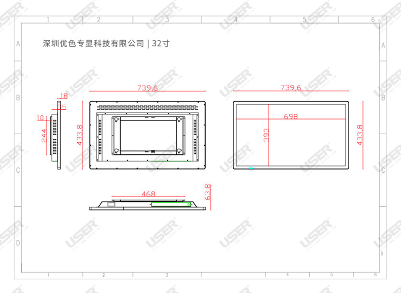 1 顯示屏幕 采用商用級A規(guī)屏(使用壽命:60000小時)。