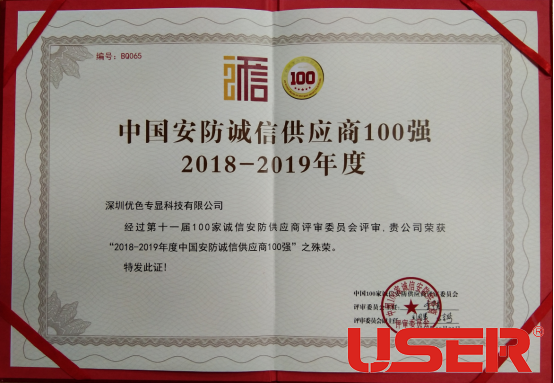 優(yōu)色專顯拼接屏榮獲第十一屆北京安博會100家誠信品牌安防供應(yīng)商