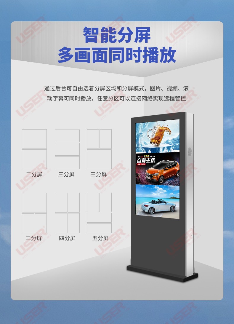菜單產(chǎn)品中心Product center 液晶廣告機(jī) 壁掛式廣告機(jī) 落地立式廣告機(jī) 電梯超薄廣告機(jī) 車(chē)載廣告機(jī) 高亮廣告機(jī) 戶(hù)外廣告機(jī) 液晶拼接屏 專(zhuān)業(yè)液晶拼接屏 4K液晶拼接屏 廣告拼接屏 無(wú)縫液晶拼接屏 觸摸液晶拼接屏 LED顯示屏 觸控一體機(jī) 壁掛式觸控一體機(jī) 立式觸控一體機(jī) 斜面觸控一體機(jī) 智能家居觸控一體機(jī) 戶(hù)外觸控一體機(jī) 液晶電子白板 教育電子白板 會(huì)議電子白板 工控一體機(jī) 觸摸顯示器 紅外觸摸顯示器 電容觸摸顯示器 電阻觸摸顯示器 聲波觸摸顯示器 納米觸摸顯示器 液晶監(jiān)視器 專(zhuān)業(yè)級(jí)監(jiān)視器 4K監(jiān)視器 嵌入式監(jiān)視器 機(jī)架式監(jiān)視器 開(kāi)放式監(jiān)視器 SDI監(jiān)視器 高亮監(jiān)視器 廣播級(jí)監(jiān)視器 工業(yè)顯示器 4K顯示器 機(jī)架式顯示器 開(kāi)放式顯示器 醫(yī)療顯示器 KVM顯示器 指揮室顯示器 智慧校園產(chǎn)品 專(zhuān)業(yè)定制商顯 多屏廣告機(jī) 多功能觸控一體機(jī) 多功能廣告機(jī) 微信打印廣告機(jī) 魔鏡廣告機(jī) 透明廣告機(jī) 全息廣告機(jī) 條形屏廣告機(jī) 旋轉(zhuǎn)廣告機(jī) 裸眼3D廣告機(jī) 人工智能產(chǎn)品 顯示配套設(shè)備 拼接配套設(shè)備 廣告機(jī)播放盒 OPS播放盒 拼接支架 移動(dòng)支架 相關(guān)軟件 吊頂支架 線材 木架 蜂窩箱 桌面底座 熱門(mén)產(chǎn)品 →優(yōu)色3.5mm超窄邊46寸液晶拼接屏→優(yōu)色49寸3.5mm超窄邊液晶拼接屏→優(yōu)色3.5mm超窄邊55寸液晶拼接屏 您的位置:首頁(yè) → 公司產(chǎn)品 → 液晶廣告機(jī) → 戶(hù)外廣告機(jī) 49寸戶(hù)外落地廣告機(jī)類(lèi)別:戶(hù)外廣告機(jī) 簡(jiǎn)介:液晶尺寸:49英寸 1.整機(jī)采用風(fēng)冷方案,達(dá)到IP65防護(hù)等級(jí),防塵、防水,可完全安裝于室外; 2.高亮度的液晶顯示屏,配合自動(dòng)光感控制系統(tǒng)陽(yáng)光下可視; 3.具備溫控功能,在寬溫條件下可以正常工... 在線咨詢(xún) 返回列表 產(chǎn)品說(shuō)明 相關(guān)產(chǎn)品 55寸戶(hù)外壁掛廣告機(jī) 55寸戶(hù)外落地廣告機(jī) 49寸戶(hù)外落地廣告機(jī) 43寸戶(hù)外落地廣告機(jī) 32寸戶(hù)外落地廣告機(jī) 65寸戶(hù)外燈桿屏_智慧路燈屏