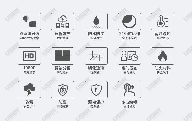 菜單產(chǎn)品中心Product center 液晶廣告機(jī) 壁掛式廣告機(jī) 落地立式廣告機(jī) 電梯超薄廣告機(jī) 車載廣告機(jī) 高亮廣告機(jī) 戶外廣告機(jī) 液晶拼接屏 專業(yè)液晶拼接屏 4K液晶拼接屏 廣告拼接屏 無縫液晶拼接屏 觸摸液晶拼接屏 LED顯示屏 觸控一體機(jī) 壁掛式觸控一體機(jī) 立式觸控一體機(jī) 斜面觸控一體機(jī) 智能家居觸控一體機(jī) 戶外觸控一體機(jī) 液晶電子白板 教育電子白板 會(huì)議電子白板 工控一體機(jī) 觸摸顯示器 紅外觸摸顯示器 電容觸摸顯示器 電阻觸摸顯示器 聲波觸摸顯示器 納米觸摸顯示器 液晶監(jiān)視器 專業(yè)級(jí)監(jiān)視器 4K監(jiān)視器 嵌入式監(jiān)視器 機(jī)架式監(jiān)視器 開放式監(jiān)視器 SDI監(jiān)視器 高亮監(jiān)視器 廣播級(jí)監(jiān)視器 工業(yè)顯示器 4K顯示器 機(jī)架式顯示器 開放式顯示器 醫(yī)療顯示器 KVM顯示器 指揮室顯示器 智慧校園產(chǎn)品 專業(yè)定制商顯 多屏廣告機(jī) 多功能觸控一體機(jī) 多功能廣告機(jī) 微信打印廣告機(jī) 魔鏡廣告機(jī) 透明廣告機(jī) 全息廣告機(jī) 條形屏廣告機(jī) 旋轉(zhuǎn)廣告機(jī) 裸眼3D廣告機(jī) 人工智能產(chǎn)品 顯示配套設(shè)備 拼接配套設(shè)備 廣告機(jī)播放盒 OPS播放盒 拼接支架 移動(dòng)支架 相關(guān)軟件 吊頂支架 線材 木架 蜂窩箱 桌面底座 熱門產(chǎn)品 →優(yōu)色3.5mm超窄邊46寸液晶拼接屏→優(yōu)色49寸3.5mm超窄邊液晶拼接屏→優(yōu)色3.5mm超窄邊55寸液晶拼接屏 您的位置:首頁 → 公司產(chǎn)品 → 液晶廣告機(jī) → 戶外廣告機(jī) 55寸戶外壁掛廣告機(jī)類別:戶外廣告機(jī) 簡(jiǎn)介:液晶尺寸:55英寸 1.整機(jī)采用風(fēng)冷方案,達(dá)到IP65防護(hù)等級(jí),防塵、防水,可完全安裝于室外; 2.高亮度的液晶顯示屏,配合自動(dòng)光感控制系統(tǒng)陽光下可視; 3.具備溫控功能,在寬溫條件下可以正常工... 在線咨詢 返回列表 產(chǎn)品說明 相關(guān)產(chǎn)品 55寸戶外壁掛廣告機(jī) 55寸戶外落地廣告機(jī) 49寸戶外落地廣告機(jī) 43寸戶外落地廣告機(jī) 32寸戶外落地廣告機(jī) 65寸戶外燈桿屏_智慧路燈屏