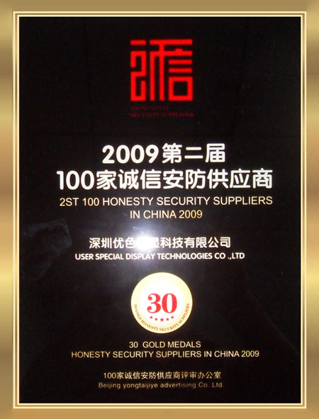 誠信安防供應(yīng)商獎牌